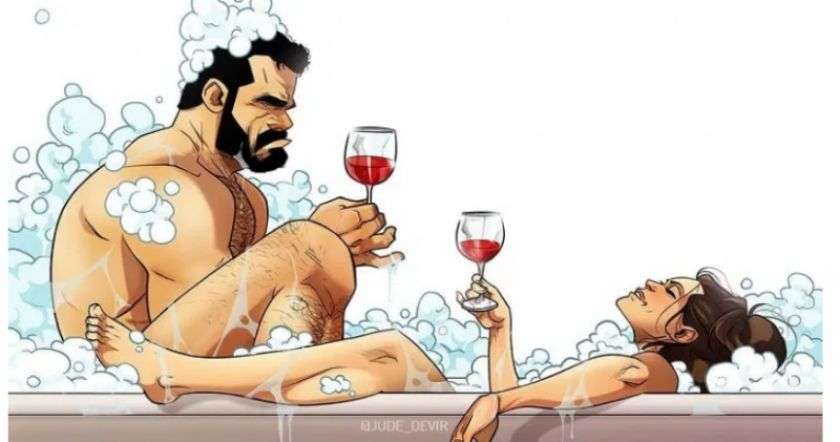 Նա ցանկանում է լոգանք ընդունել մի բաժակ գինով: Հանգստանալու հրաշալի գաղափար է, այնպես չէ՞: Նա (տղամարդը) սկզբում նույնպես այդպես մտածեց: