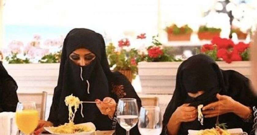 Իհարկե, այս կանայք ճգնավորի կյանքով չեն ապրում և այցելում են հասարակական վայրեր ու ռեստորաններ, սակայն նրանց համար չկան հատուկ առանձնացված սենյակներ, որտեղ նրանք կկարողանային հանել նիկաբն ու հանգիստ ուտել: Ռեստորաններում կանայք և տղամարդիկ միևնույն սրահում են նստում: