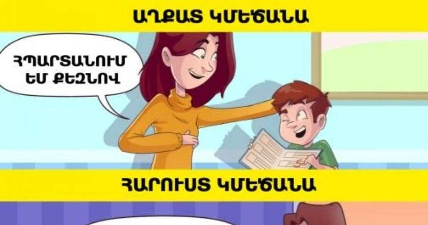 Հաճախ կարելի է ծնողներից այսպիսի արտահայտություններ լսել. «Դու շատ ծույլ ես», «Մեծանաս՝ հավաքարար ես դառնալու», «Գլուխդ չի աշխատում» և այլն։ Նման «հաճոյախոսություններից» հետո զարմանալի չէ, որ երեխան անինքնավստահ և բարդույթավորված է մեծանում։ Երկրորդ տեղում այսպիսի արտահայտություններն են. «Արդար քրտինքով չես հարստանա», «Բոլոր հարուստները գողեր են» և այլն։ Բնականաբար, երեխան դժվար թե փորձի հարստանալ հետագայում, եթե նա նախօրոք արդեն գիտի, որ դա անհնար է։