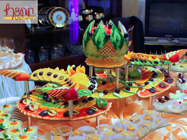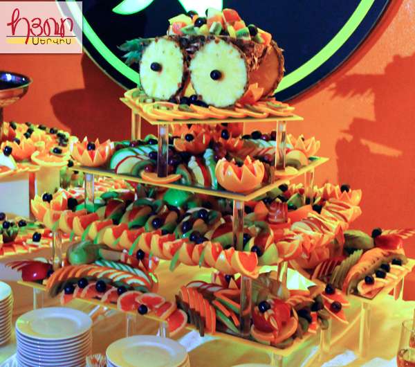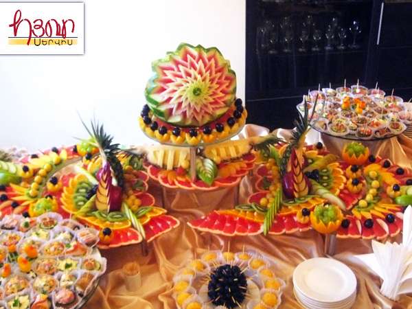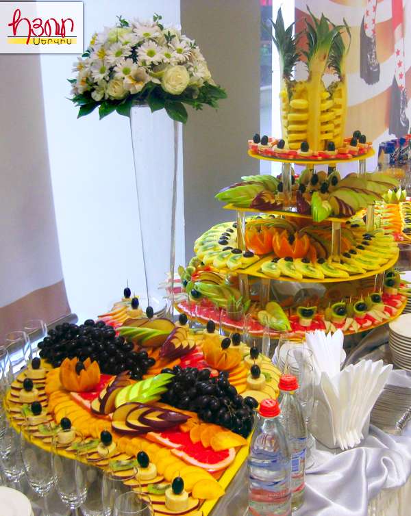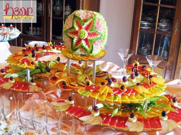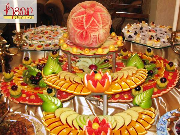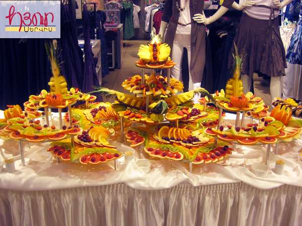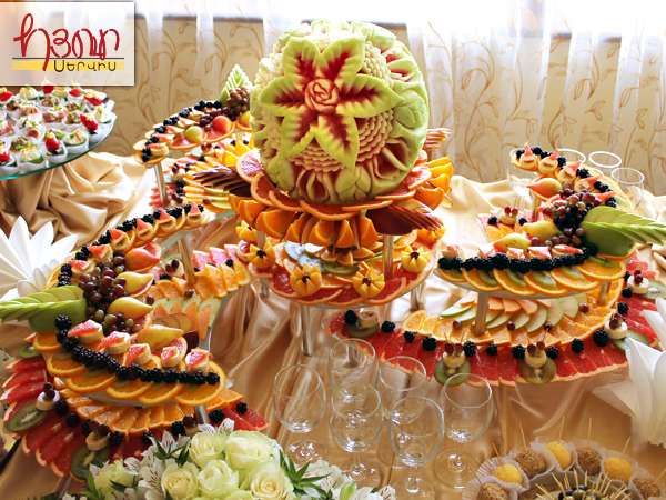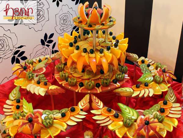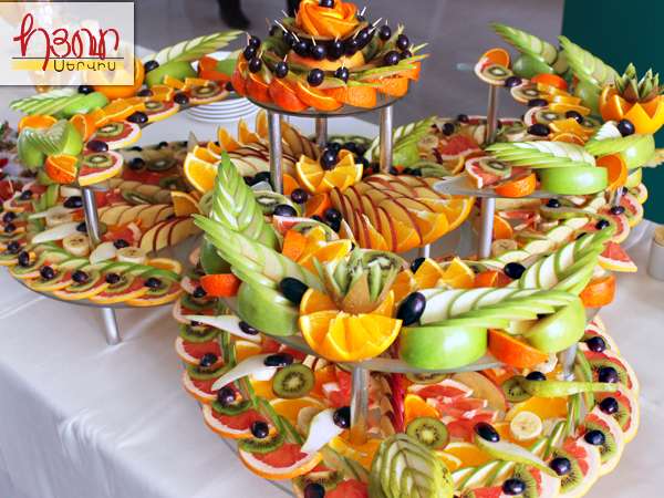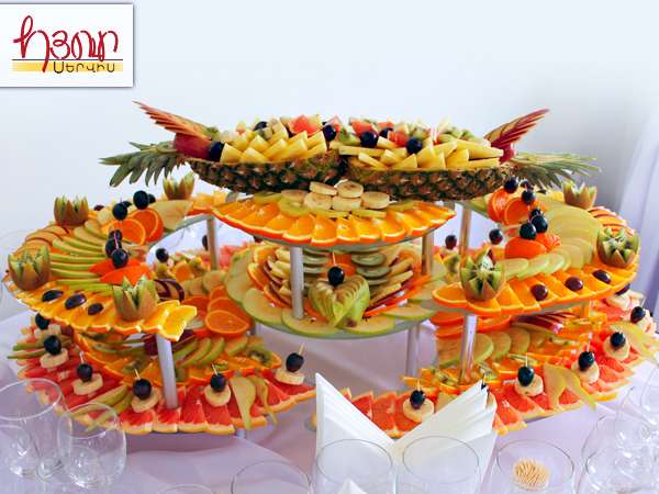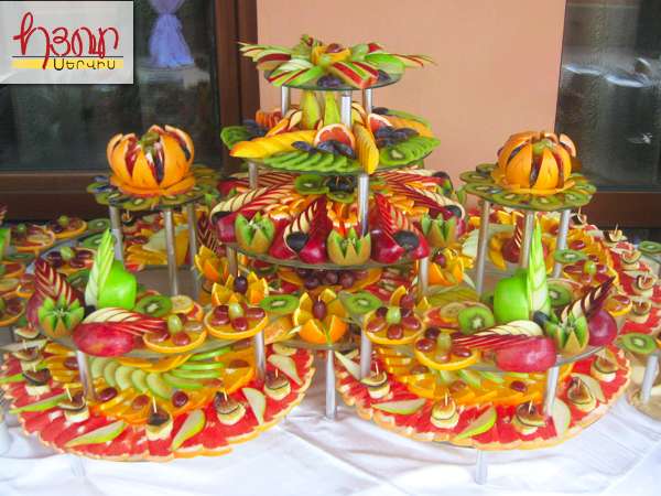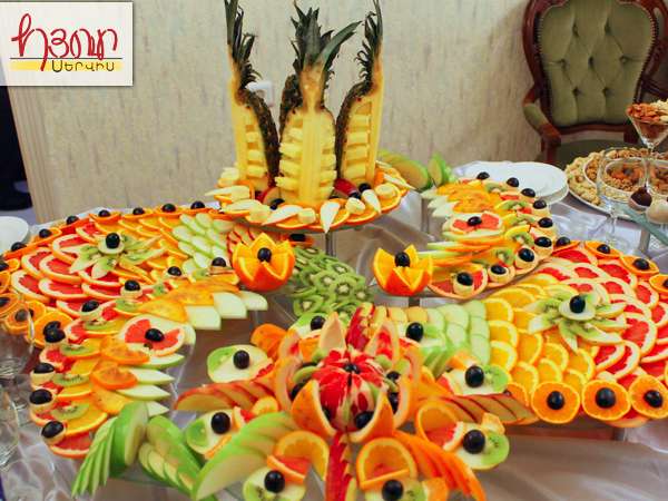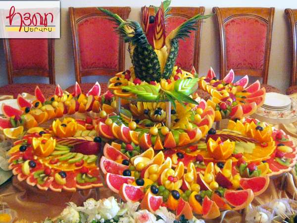 «Հյուր սերվիս» ընկերության խոհարար-դիզայներները երկար տարիներ հիացրել են պատվիրատուներին՝ իրենց ստեղծած բացառիկ մրգային ձևավորումներով, որոշ դեպքերում անգամ զարմացրել՝ մեծամասշտաբ միջոցառումներին ապահովելով 8-10 ք.մ. մակերես զբաղեցնող հսկայական մրգային գլուխգործոցներ՝ կազմված 100-150 կգ ձևավորված մրգերից: