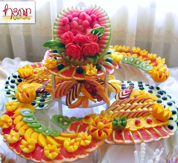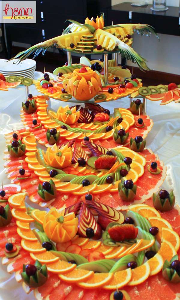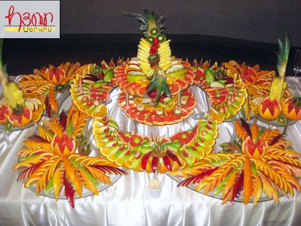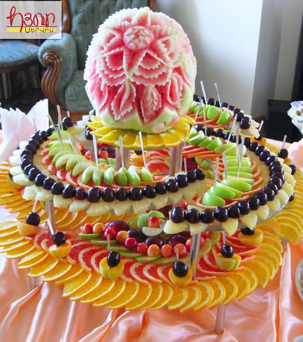 Գաղտնիք չէ, որ ցանկացած հյուրասիրության սեղանի զարդը միրգն է: Հատկապես տոնական և ֆուրշետային սեղաններն անհնար է պատկերացնել առանց գեղեցիկ ձևավորված մրգային կոմպոզիցիաների: