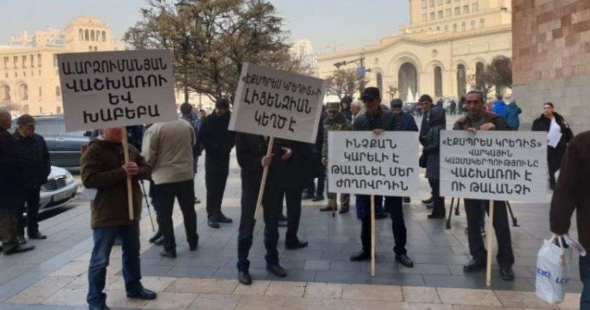 Տուժած քաղաքցիները կառավարության մոտ էին եկել «Ա․Արզումանյան, վաշխառու և խաբեբա», ««Էքսպրես Կրեդիտ»-ի լիցենզիան կեղծ է», ««Էքսպրես Կրեդիտ» վարկային կազմակերպությունը վաշխառու է և թալանչի» ու համահունչ գրառումներով այլ պաստառներով։