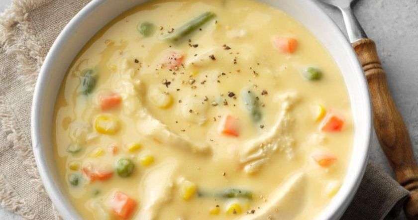 6. Ապուրին ավելացնել սերուցքային պանիրը, լավ խառնել: