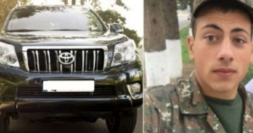 Մեքենան Արցախում Աշոտ Փաշինյանին սպասարկում է այն ժամանակ, երբ նա զորամասից դուրս է գալիս։