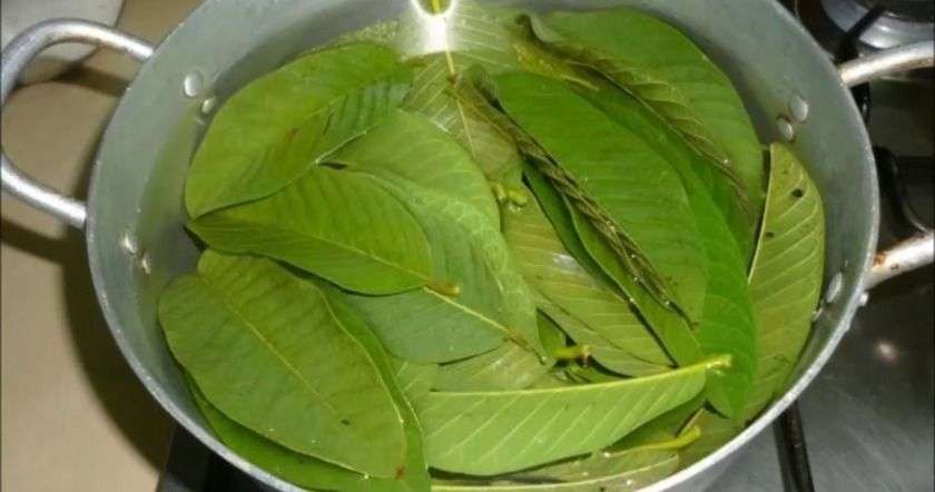 - Ճզմեք գուավայի տերևները, ավելացրեք եռացած ջրի մեջ։