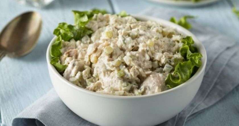 3. Ձուն, հավը, պանիրը, վարունգը, սոխը խորանարդաձև կտրատել, ավելացնել մայոնեզը և խառնել: