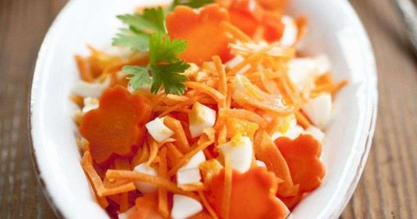 2. Խաշած ձվերը մաքրել, անցկացնել քերիչով կամ մանր կտրատել, ավելացնել գազարին:
