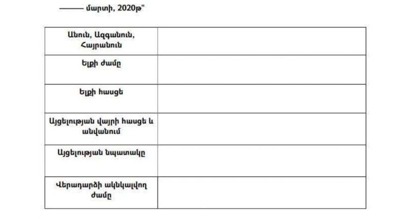 Ձևաթուղթն, ըստ ամենայնի, նրա համար է, որ անհրաժեշտության դեպքում ճշտվի ձեր շփման շրջանակը, եթե, Աստված մի արասցե, դուք ինչ-որ օջախում եք հայտնվել: Նույնն է, թե գնաս բժշկի ու խաբես, թե որտեղդ է ցավում: Պաշտպանական ռեակցիաները ճիշտ թիրախի չեն ուղղված: