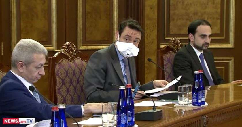 Պարոն Փաշինյան, ի՞նչ կլինի, էս տղուն թողեք, թող տանից Zoom-ով կպնի էլի ձեր խորհրդակցությանը, ինչի՞ եք էսքան տանջում։ Ախր ինքը սովորական ժամանակ նույնիսկ, որ «վիրուս» բառ ա լսում, գոռալով թռնում ա աթոռի վրա ու սկսում ա աղջկա ձենով գոռալ՝ Մկո։ Դուք պատկերացնո՞ւմ եք՝ հիմա իր հետ ինչ ա կատարվում։ Վստահեցնում եմ Ձեզ, որ նկարում պատկերված դեմքի պամպերսը միակը չէ, որ կա Մարությանի հագին։