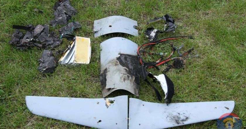 ՊԲ-ն ներկայացնում ապրիլի 21-ին՝ ժամը 13:07-ի սահմանում, ՊԲ հակաօդային պաշտպանության ստորաբաժանումների կողմից հարավային հատվածում խոցված անօդաչու թռչող սարքի մնացորդների լուսանկարները: