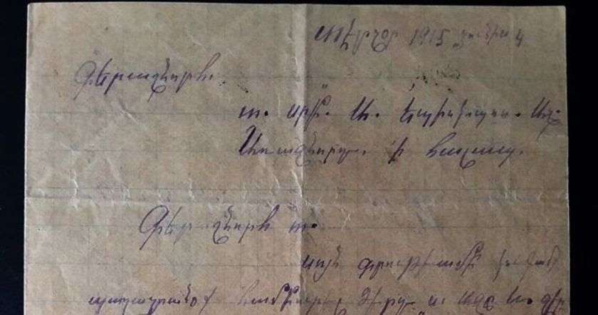 Այս բացառիկ նամակը հայտնաբերվել է անցյալ տարի: Այն գրվել է Դեր Զորից, 1915 թ. հունիսի 4-ին: Ֆռնուզից Դեր Զոր բռնագաղթված մի քանի որբեր դիմում են Հալեպի Առաջնորդ Սրբազանին՝ խնդրելով վերջինիս օգնությունը իրենց հայրերի գոյության վայրը ճշտելու և կեցությամբ ապահովելու համար: