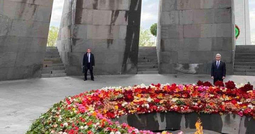 ՀՀ երրորդ նախագահ Սերժ Սարգսյանն այսօր Հայոց ցեղասպանության 105-րդ տարելիցի կապակցությամբ այցելել է Ծիծեռնակաբերդի հուշահամալիր, հարգանքի տուրք մատուցել Մեծ եղեռնի զոհերի հիշատակին, ծաղկեպսակ դրել հուշակոթողին և ծաղիկներ խոնարհել անմեղ զոհերի հիշատակը հավերժացնող անմար կրակի մոտ: