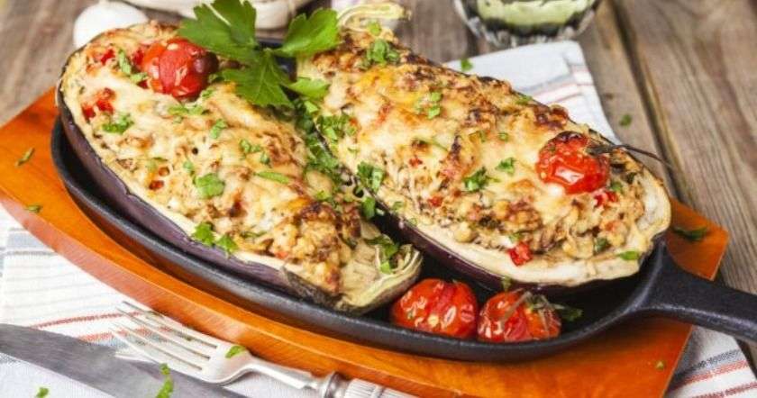 4. Ստացված զանգվածով լցոնել սմբուկները, վրան քերած պանիր լցնել: Եփել 30 րոպե, 200 աստիճան ջեռոցում: