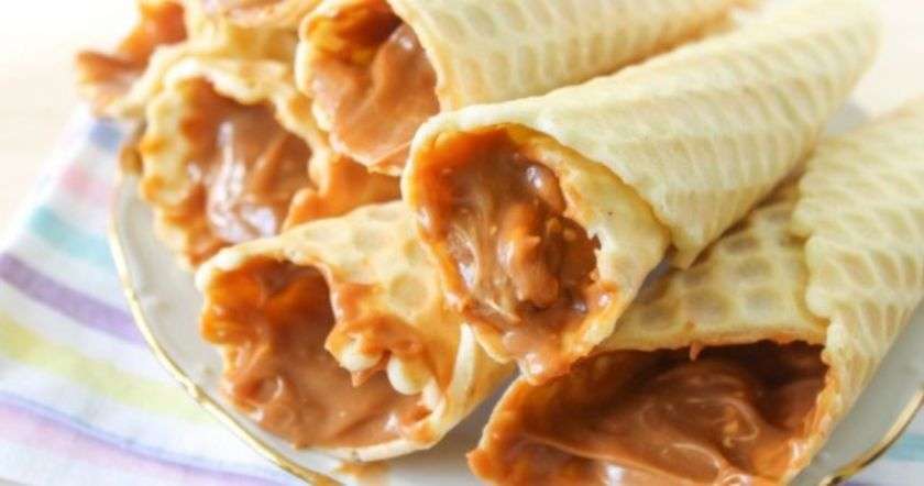 4. Կրեմի համար հարել խտացրած կաթը և կարագը և լցոնել ձողիկները: