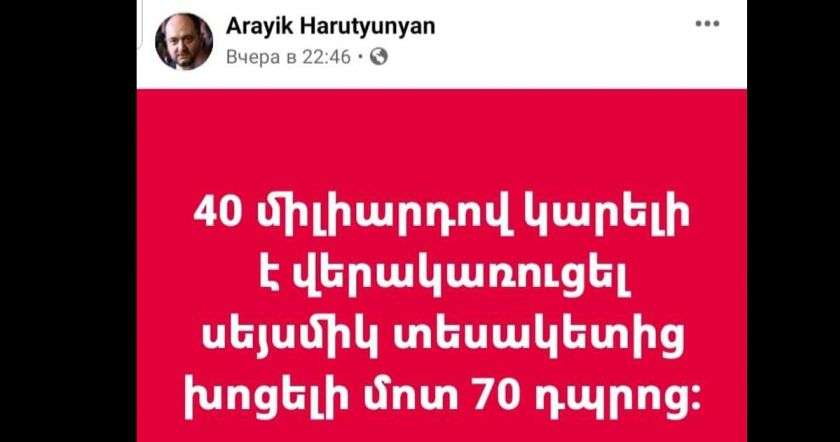 Ձեր լափած 21 միլիարդ պրեմիայով էլ կարելի էր վերակառուցել սեյսմիկ տեսակետից խոցելի մոտ 35 դպրոց: Խի չեք արել, այ պոպուլիստ ապուշներ, այ թավշյա կիկոսներ։