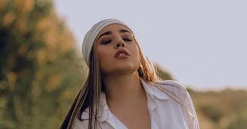 Երգչուհին սպիտակ հագուստ է ընտրել, ծղոտե պայուսակ։