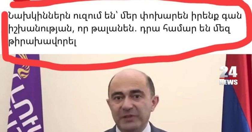 Ահա եւ Էդմոն Մարուքյանի վախը, թե բա՝ նախկիները ուզում են «ՄԵՐ» փոխարեն իրենք հետ գան, թալանեն։ Ըստ Էդմոն Մարուքյանի մտքի թռիչքի՝ պատասխանը այդպիսին է՝ փակել եմ նախկիների մուտքը, որ մենակ «ես» թալանեմ։