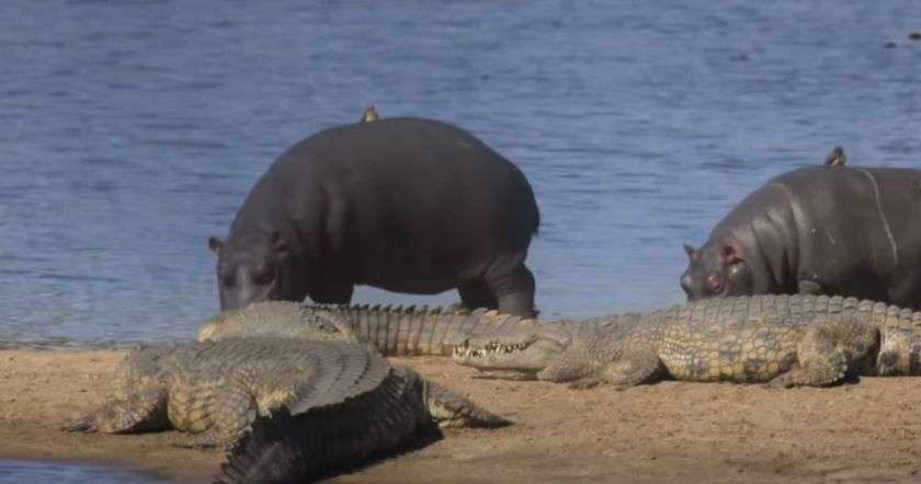 Հարավաֆրիկյան Հանրապետության Կրյուգերի ազգային պարկում գետաձիերն անցել են կոկորդիլոսների կողքով և իրենց մեջքին տաղափոխել են թռչունների: Տեսանյութը հարապարակվել է Kruger National Park Videos YouTube-յան էջում: