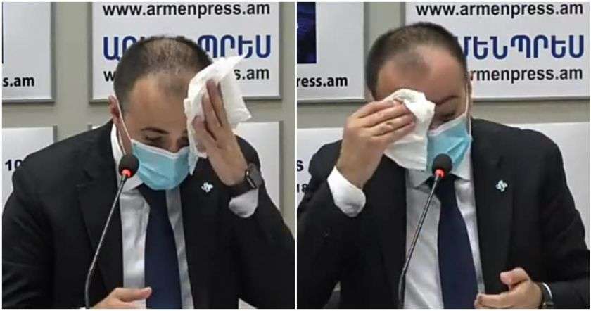 Ու տես, իմ առողջապահության չեղած նախարարության ղեկավար, քրտնեցիր 3-րոպեում, ու դիմակն էլ խոնավացավ։ Սակայն Դու, սրբելով քրտինքդ, այդպեա էլ դիմակը չփոխեցիր, ապացուցելով որ դիմակ կրելն ընդամենը ցուցադրական ակցիա է, ոչ հակահամաճարակային միջոցառում։
