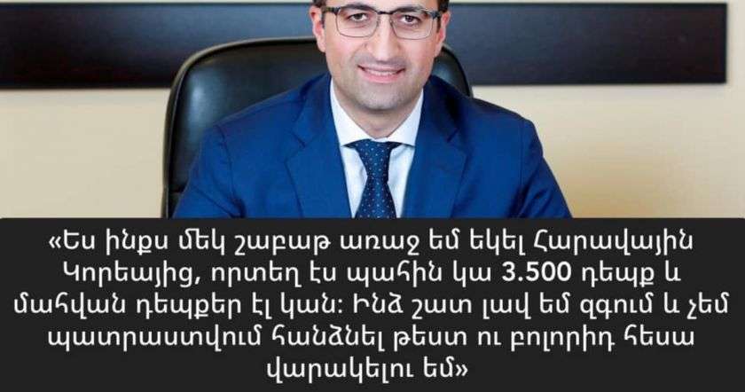 Հ․ Գ․ Հիշեք, որ դեռ մայիսի կեսերին Արսեն Թորոսյանը խոստանում էր 500,000 վարակակիր Հայաստանում, հետևաբար՝ տասնյակ հազարավոր մահեր։ալիև ընտանիքը հպարտանում է ձեզնով, պարո՜ն նախարար։