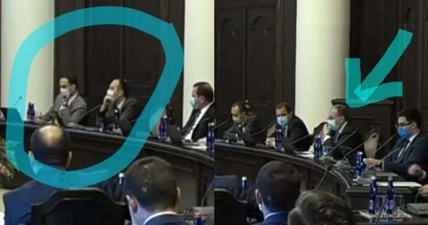 Խնդրեմ, այսօրվա կառավարության նիստին դիմակ դնելու կանոնների խախտման բազմաթիվ օրինակներից մի քանիսը։