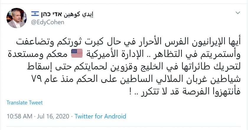 Հիշյալ հայտարարությունը կարող էր թվիթերյան պարզ գրառում համարվել, եթե դրա հեղինակը չլիներ Էյդի Քոհենը, որին համարում են Իսրայելի անվտանգության ծառայությունների ոչ պաշտոնական խոսնակը:
