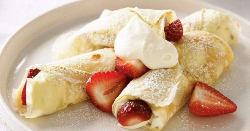 4. Կրեմը տարածել նրբաբլիթների վրա, փաթաթել: Կարելի է զարդարել հատապտուղներով: