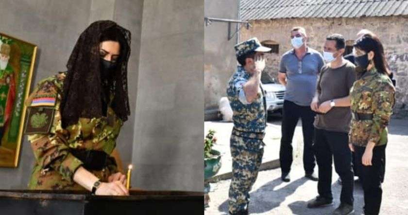 Հետո Աննա Հակոբյանը հույ եվո խի` ֆոտոսեսիա ա անում, որտեղ ինքը կամուֆլյաժով կանգնած ա, ու ԱԻՆ-ի սպան իրեն պատվի է առնում: