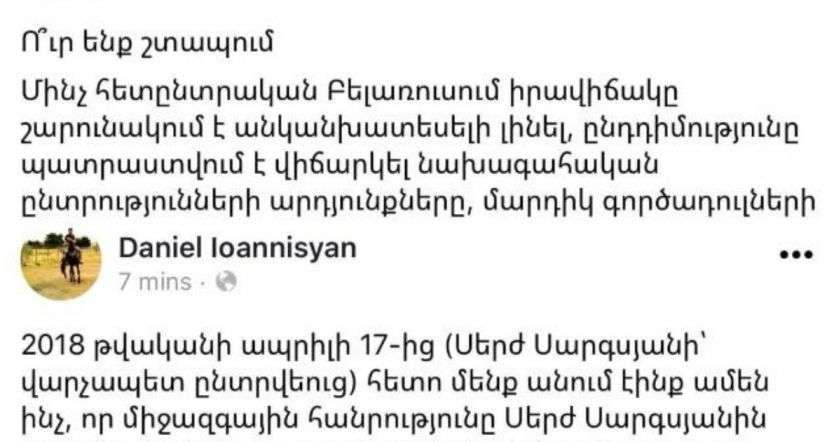 Եկեք արձանագրենք մի բան, որ մենք ճիշտ էինք՝ սորոսականները մայդան էին փորձում կազմակերպել Բելառուսում, ուղղակի մի սխալ հաշվարկ էին արել․ Լուկաշենկոն շատ ուժեղ հոտառություն ունի, նախապես պատրաստվել էր՝ կանխելով սորոսի վաստակների սադրանքները։