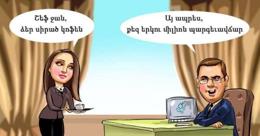 Թե չէ ստացվում է, որ Հայաստանն այնպիսի բացառիկ երկիր է, որտեղ, ինչպես վարչապետն է ասում, ՛՛Ծառան՛՛ պետք է ավելի շատ վաստակի և ամեն ամիս պարգևատրվի, իսկ ՛՛Գործատուն՛՛ շարունակի չարքաշ կյանքը, բայց ուրախանա ՛՛Ծառայի՛՛ հաջողություններով...