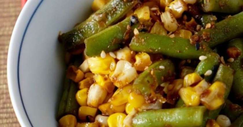4. Տարայի մեջ խառնել պահածոյացված եգիպտացորենը, սոխը, սամիթը, կիտրոնի հյութը, կեղևը, մանանեխը, աղը և պղպեղը:
