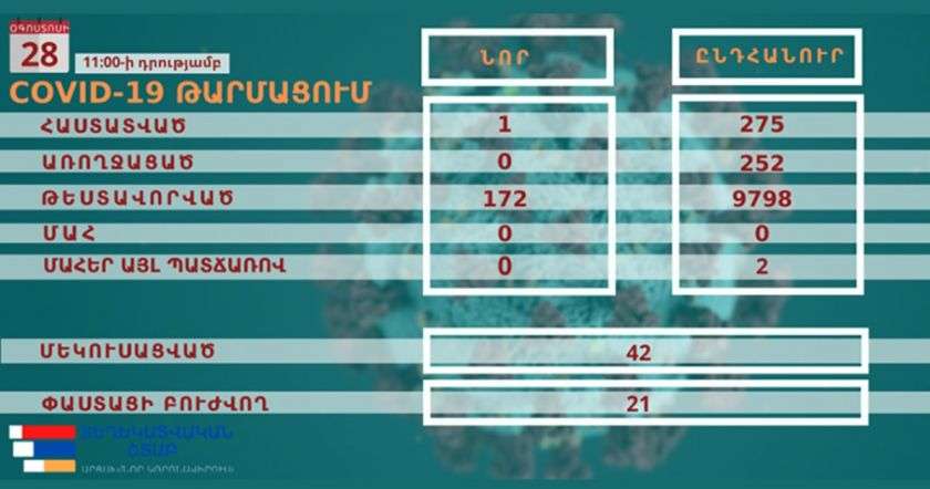«Առայսօր, նոր կորոնավիրուսային հիվանդությունը հաստատվել է 275 մարդու մոտ, որից 252-ը հաղթահարել է հիվանդությունը: