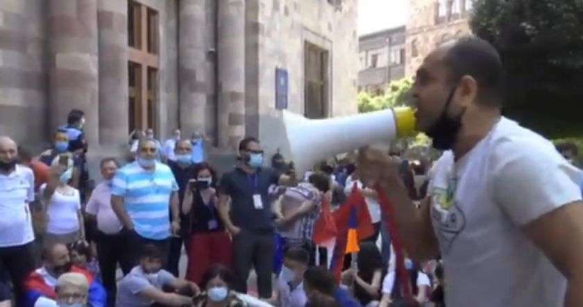 Նիկոլ Փաշինյան, եթե դու վաշխառուական համակարգի, օլիգարխիայի ծառա չես, իջիր այստեղ, եթե դու նրանց ծառան չես, իջիր ցած ու ապացուցիր դա: Կառավարության մոտ հայտարարեց ակցիա անող քաղաքացիներից մեկը: