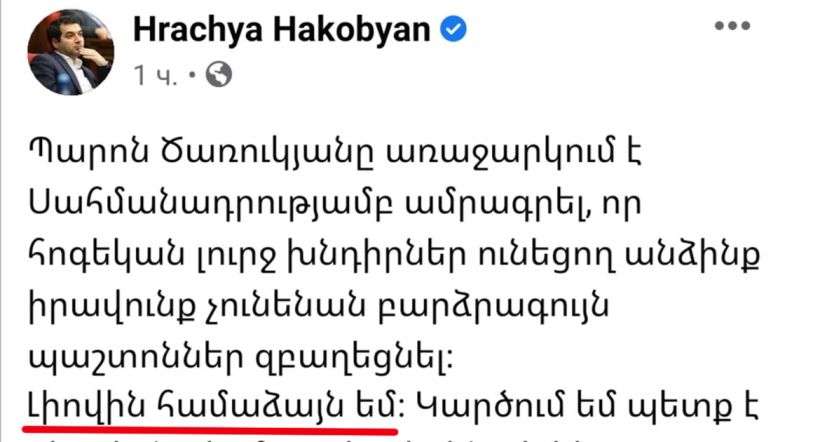 Փաստացի ասում ա. «Հա, Նիկոլը գիժ ա, բայց Ծառուկյանն այդքան էլ խելացի մարդ չէ»: