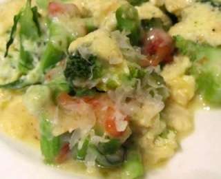 Կարող եք կտրատած լոլիկ կամ լոլիկով իտալական սոուս ավելացնել: Եփել նախապես 180 (350 F) աստիճան միացրած ջեռոցում 20-30 րոպե: Բարի ախորժակ :)