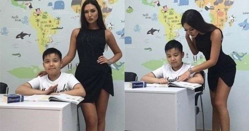 Ղազախստանի 22-ամյա բնակչուհի Ալինա Էվանսը համացանցում հայտնի է դարձել դասասենյակում արված լուսանկարի շնորհիվ, որում նա աշակերտին անգլերենի դաս էր բացահայտում։ Բոլորը հիացած էին ու երազում էին ներկա լիներ նրա դասերին։