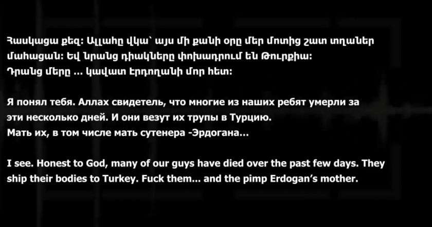 Համացանցում հայտնվել է ևս մեկ գաղտնազերծված ձայնագրություն, որն ապացուցում է, որ սիրիացի վարձկաններն այս օրերին կռվում են Ադրբեջանի բանակի կազմում Արցախի դեմ: