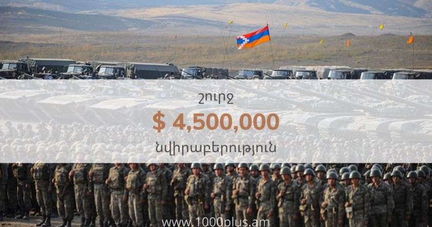Երեք շաբաթում մեր հայրենակիցները աշխարհի 60 երկրներից Զինծառայողների ապահովագրության հիմնադրամին 4.5 միլիոն դոլար են նվիրաբերել:
