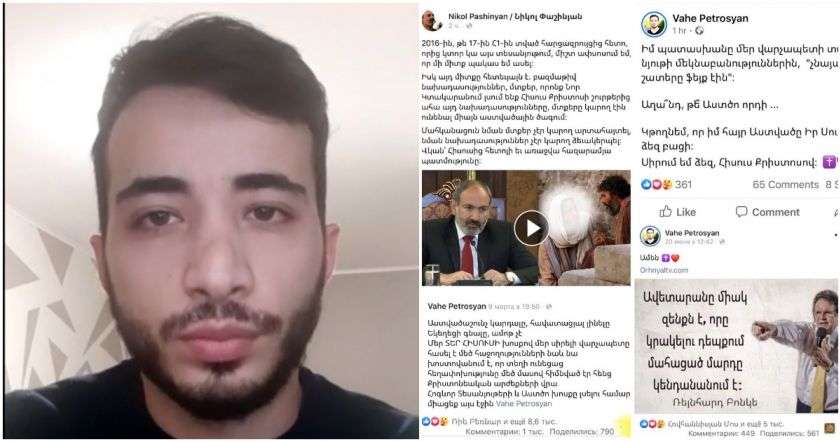 «… Մասնավորապես, www.facebook.com սոցիալական ցանցի օգտատեր Վահե Պետրոսյանը, ով ներկայանում է որպես կրոնական քարոզիչ, իր ուղիղ եթերներից մեկում խնդրել է իրեն ուղարկել առաջնագծում գտնվող զինվորների վերաբերյալ «վկայություններ», թե ինչպես են վերջիններս փրկվել Աստծո շնորհիվ»։