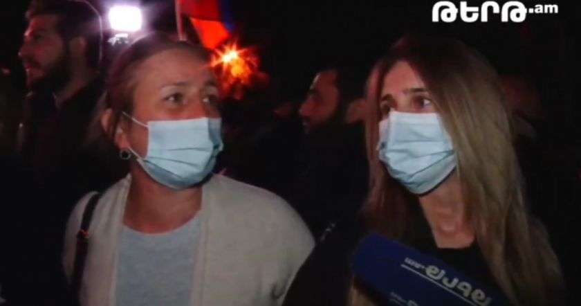 Ազգային ժողովի մոտ Ոստիկանության զգուշացումից հետո, որ 5 րոպեից ցուցարարների չհեռանալու դեպքում հատուկ միջոցներ են կիրառելու, արցախցի կանայք, ովքեր Ստեփանակերտից էին, ոստիկանին դիմելով ասացին, որ վարչապետը Նիկոլ Փաշինյանն իրավունք չուներ իրենց փոխարեն որոշում կայացնելու և ստորագրելու Արցախի վերաբերյալ եռակողմ հայտարարությունը։