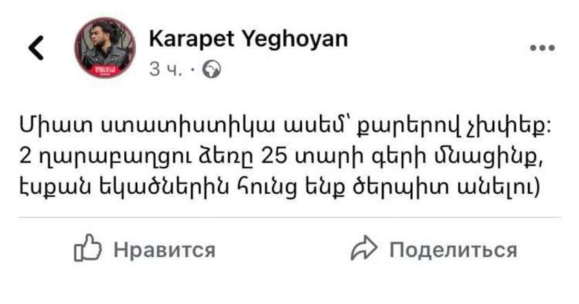 Սա Դրամատիկականի դերասան ա գրում։ Իսկ դուք մեքենայից արցախցիներին իջացնող տաքսիստներից եք բողոքում։