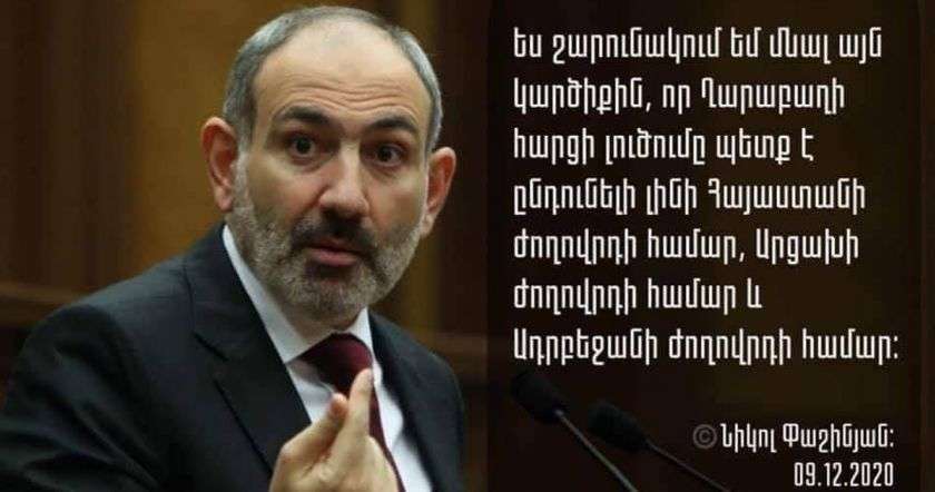 Եվ այսօր, երբ նիկոլն ասում է "Հայաստանի ժողովուրդ", նա նկատի ունի հենց այս զանգվածին։ Այսօր նրա կողքին մնացել են այն մարդիկ, որոնք այն ժամանակ էլ թքած ունեին Արցախի վրա, մարդիկ, ում համար Արցախը Հայրենիք չէր, այլ պարզապես մի հողակտոր, որի պատճառով իրենց կյանքը լի էր տարատեսակ խնդիրներով։ Ակնհայտ է, որ նիկոլի ստորագրած "լուծումը" ընդունելի է նման մարդկանց համար։ Ակնհայտ է, որ ոչ նիկոլի, ոչ իրենցքայլական պատգամավորների, ոչ իրենցքայլական կառավարության ու ոչ էլ նրանց ընտրազանգվածի համար Հայրենիքն առաջին տեղում չէ։ Ակնհայտ է, որ այս զանգվածի համար ամենա վատ լուծումն էլ ընդունելի էր լինելու։