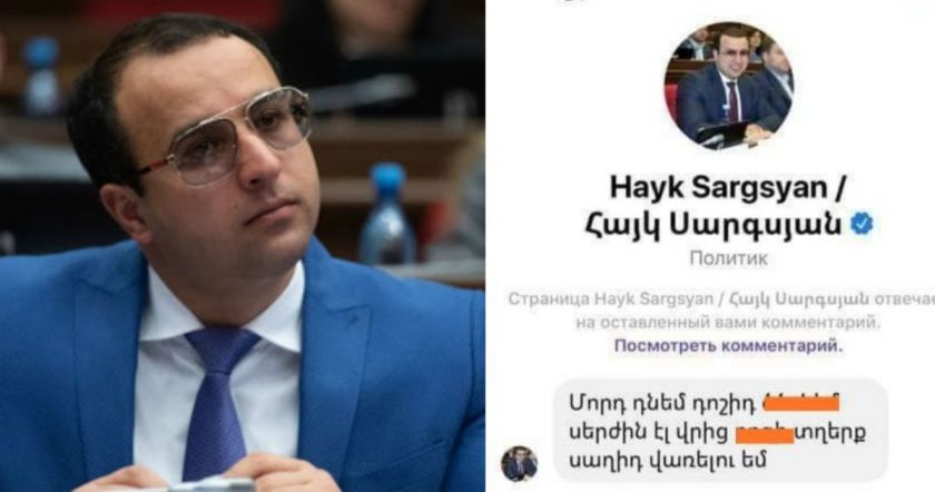 ՀՀ Ազգային ժողովի պատգամավոր, իշխանական «Իմ քայլը» խմբակցության անդամ Հայկ Սարգսյանը՝ հայտնի Շիշ բռնողը, քաղաքացու հետ գրագրության ժամանակ իրեն պահել է փողոցային խուժանի պես: Քաղաքացի Հրաչ Մելքումյանը ֆեյսբուքյան էջին հրապարակել է Շիշ բռնողի՝ սեռական բնույթի հայհոյանքներով լի սպառնալիքը: Հրապարակման բառամթերքից դատելով՝ Շիշ բռնողը տարրական ինքնատիրապետումից զուրկ շարքային խուլիգան է, ով իրեն քննադատող քաղաքացիների հետ շփումներում սպառնում է աջուձախ վառել բոլորին: