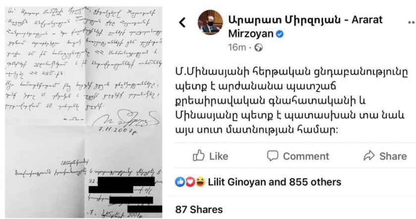 Փաստը հրապարակված է, առաջարկում եմ փորձաքննության տանել թուրքի շպիոնի ձեռագիրը և ցուցմունք վերցնել, թե ինչ հանգամանքներում է դարձել Հայաստանի ԱԱԾ գործակալ:
