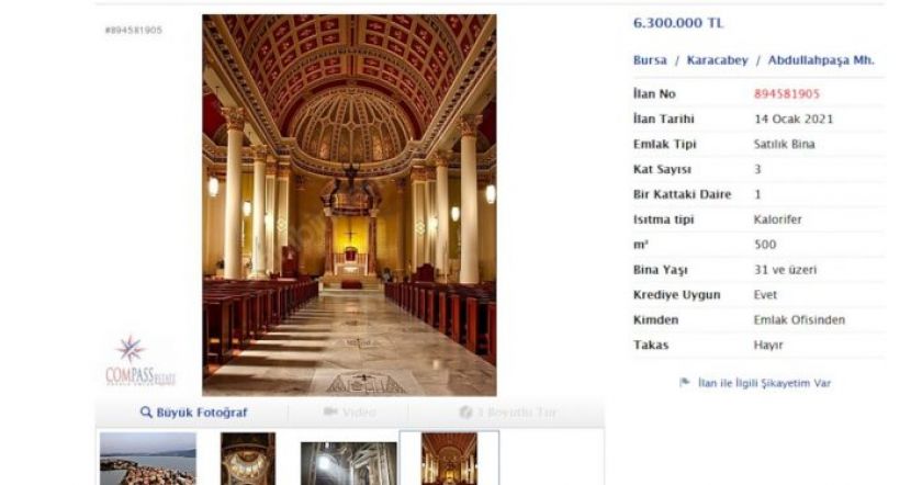 Նախորդ շաբաթ թուրքական առևտրային կայքերից մեկում Բուրսա քաղաքի Սեբթաշը թաղամասում գտնվող հայկական կաթոլիկ եկեղեցին 6 մլն թուրքական լիրայով վաճառքի հանվելուց հետո նախօրեին «Sahibiden.com» կայքում վաճառքի է հանվել Բուրսայի մյուս հայկական եկեղեցին։ Վերջին եկեղեցու համար հայտարարություն տեղադրող անձը վաճառքի համար 6 մլն 300․000 թուրքական լիրա է սահմանել։