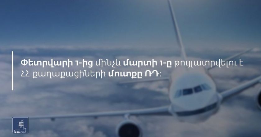 Փետրվարի 1-ից մինչև մարտի 1-ը գործելու է պիլոտային ծրագիր, որով Հայաստանից Ռուսաստան և հակառակ ուղղությամբ ճամփորդելու համար ուղևորին թույլատրվում է պետական սահմանը հատել կորոնավիրուսի թեստի բացասական արդյունքի առկայության դեպքում (առավելագույնը 72 ժամ վաղեմության)։