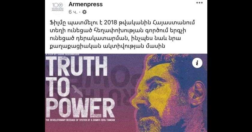Սերժ Թանկյան, ազգակործան փոքրիկ ստահակ, ֆիլմում պատմու՞մ ես, թե հեղափոխությունդ ինչպես ոչնչացրեց Հայաստան պետությունը, պատմու՞մ ես, թե ոնց դավաճան դեգեներատների հետ զավթեցիք իշխանությունն ու հանձնեցիք Արցախը, 5000-ից ավել ջահել տղու գլուխ կերաք: Պատմու՞մ ես, թե ոնց ծախեցիք Շուշին, թե ոնց թուրքը նստեց Կապանի գլխին: Պատմու՞մ ես, թե հեղափոխությանդ արդյունքում ինչպես դավաճան վիժվածքը՝ թուրք Նիկոլը, լիզեց Ալիևի կոշիկներն ու 5 միլիարդ դոլարով ծախեց հայի պատիվն ու արժանապատվությունը: Ֆիլմում պատմու՞մ ես, թե ոնց խոստացար Հայաստանում բնակարան գնել ու այդպես էլ չգնեցիր: Ֆիլմում պատմու՞մ ես հեղափոխության և Եռաբլուրի չափսերի կրկնապատկման կորելացիայի մասին: Պարոն դիշովկա, ականջիդ օղ արա՝ եթե դու չպատմես, մենք ենք պատմելու, ողջ աշխարհին ենք պատմելու, թե ով ես դու, ինչ կարգի էժան ես, որ նույնիսկ հայոց ցեղասպանության 100-ամյակի համերգի համար հոնորար վերցրեցիր, որ երգես: Անիծված անինքնասեր: