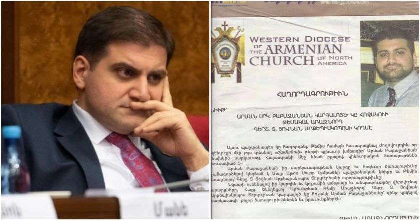 Նա, փաստորեն, ըստ մեղադրանքի, 1996 թ. լքելով Սևանի Վազգենյան հոգեւոր դպրանոցը եւ չունենալով զինծառայության տարկետման իրավունք, 1997 թ. Հայաստանի Հանրապետությունից մեկնել է Ամերիկայի Միացյալ Նահանգներ։ Այնուհետեւ զինծառայությունից անօրինական կերպով տարկետման իրավունք ձեռք բերելու նպատակով Հայաստանյայց եկեղեցու Հյուսիսային Ամերիկայի արևմտյան թեմի եւ Մայր Աթոռ Սբ Էջմիածնի դիվանապետի անունից համակարգչի օգտագործմամբ կազմել է ուսումն ԱՄՆ-ում մինչեւ 2004 թվականը շարունակելու մասին կեղծ գրություններ, 2001 թ. սեպտեմբերի 10-ի և նույն թվականի հոկտեմբերի 12-ի ամսաթվերով՝ դրանք մոր միջոցով 2002 թ. ամռանը ներկայացնելով Երևան քաղաքի Շենգավիթի տարածքային զինկոմիսարիատ։