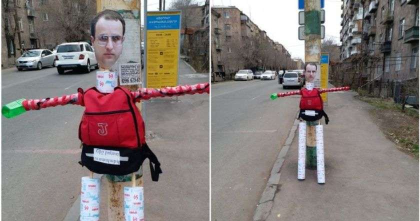 Քաղաքացիները «Իմ քայլը» խմբակցության պատգամավոր Հայկ Սարգսյանի (հայտնի որպես Շիշ բռնող) տան հարակից խաչմերուկում տեղադրել են ուսապարկ-պատգամավորի խրտվիլակը՝ որպես մարմնավորում վերջինիս էության, ինչպես նաև ի նշան Փաշինյանի աթոռը պահպանելու գործում նրա ունեցած ավանդի։