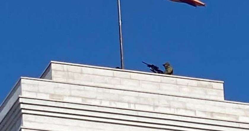 Դիպուկահարները հենց հիմա ԱԳՆ֊ը տանիքին։ Վիժվածքը էն միակ ղեկավարն ա, ով իր ղեկավարած պետության մայրաքաղաքում տեղաշարժվում ա ոստիկանների պատնեշով շրջապատված։